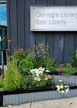 East Liberty Library Flower Beds: Members of the HPGC maintain and update the planters located at the front of the East Liberty branch of the Carnegie Library, watering, mulching, dead-heading flowers, and trimming plants as needed, and attending to seasonal tasks such as planting fall bulbs for spring blooms. The flowers attract many pollinators. People walking by and patrons of the library love it!